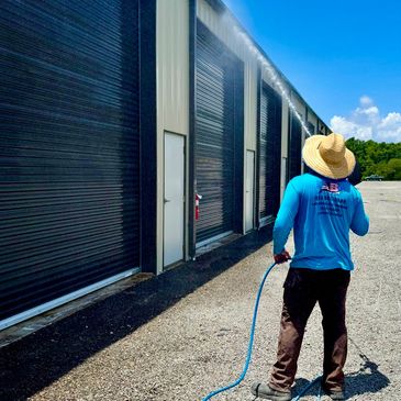 Over time, storage units collect dirt, algae, mildew, and cobwebs—giving your facility a neglected appearance. Our low-pressure soft washing process safely removes grime without damaging metal siding, roll-up doors, or signage. Whether you need a full facility cleaning or just a touch-up, we’ll make it look spotless and well-maintained.